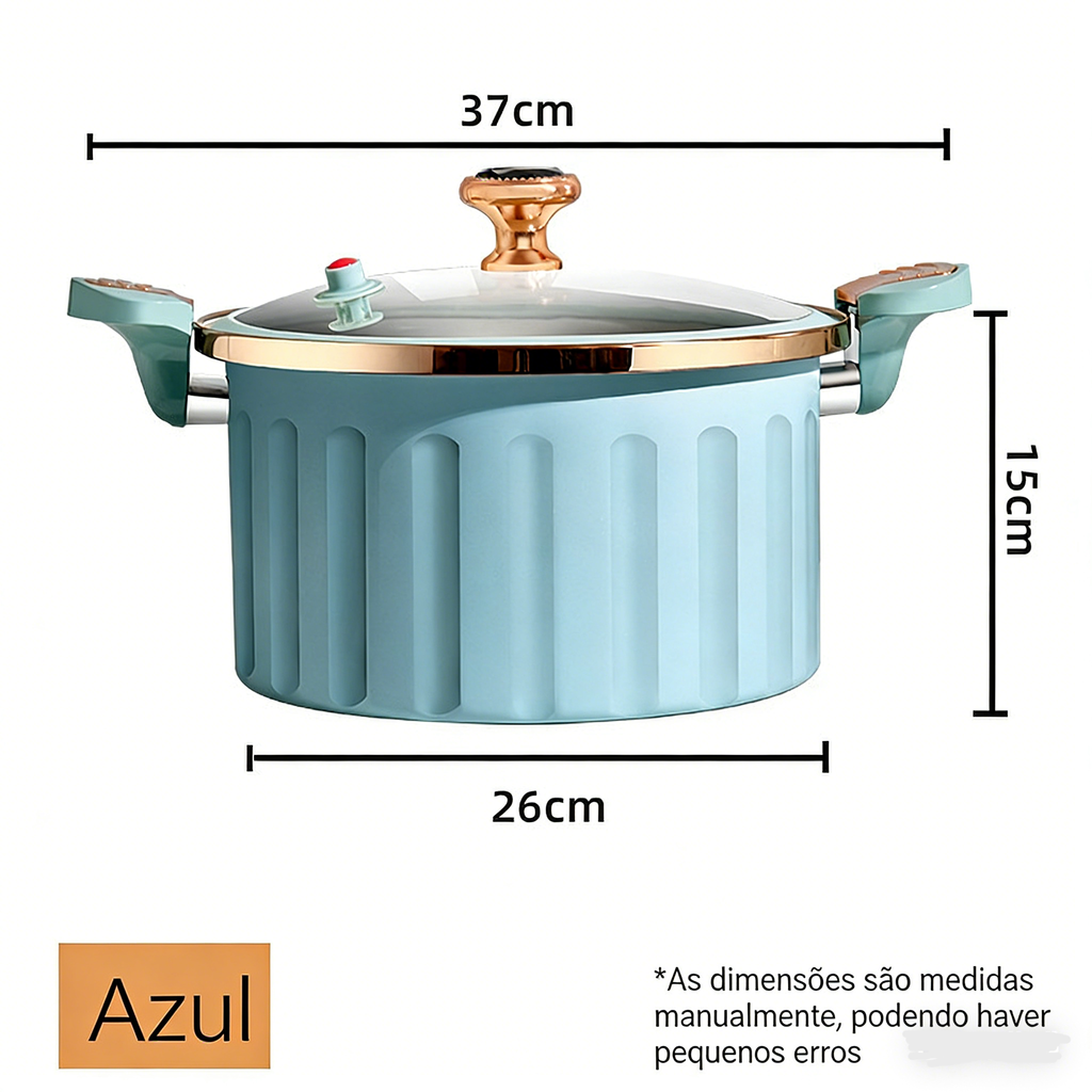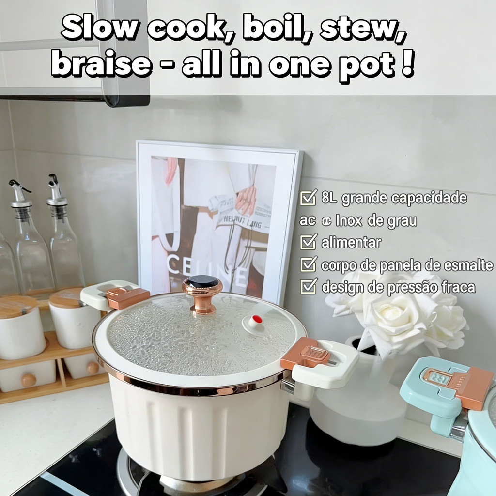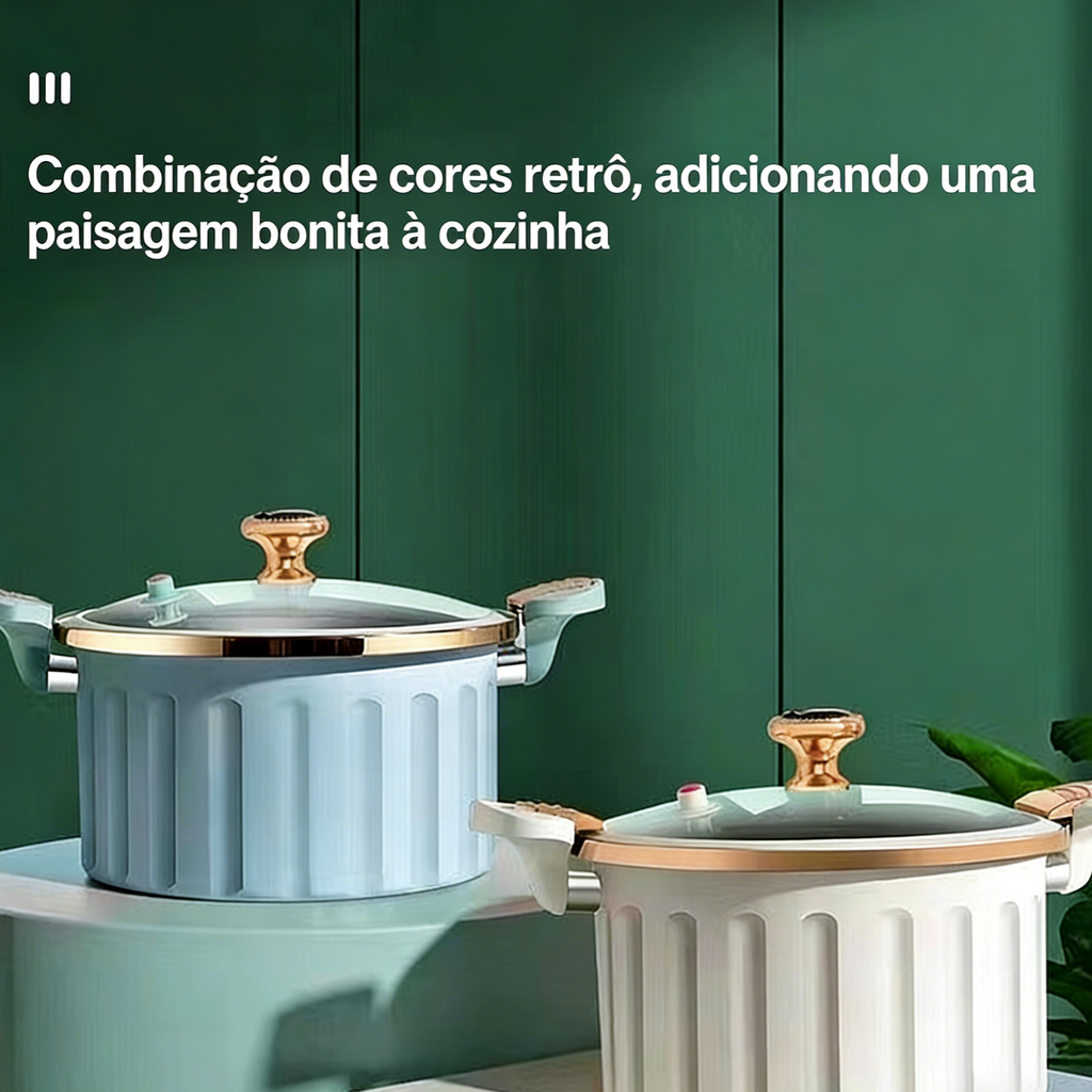 Chegou a panela de micro pressão esmaltada premium, a solução perfeita para cozinhar refeições saborosas, rápidas e saudáveis para toda a família. Design elegante, multifuncional e de alta durabilidade, ideal para o dia a dia da sua cozinha!