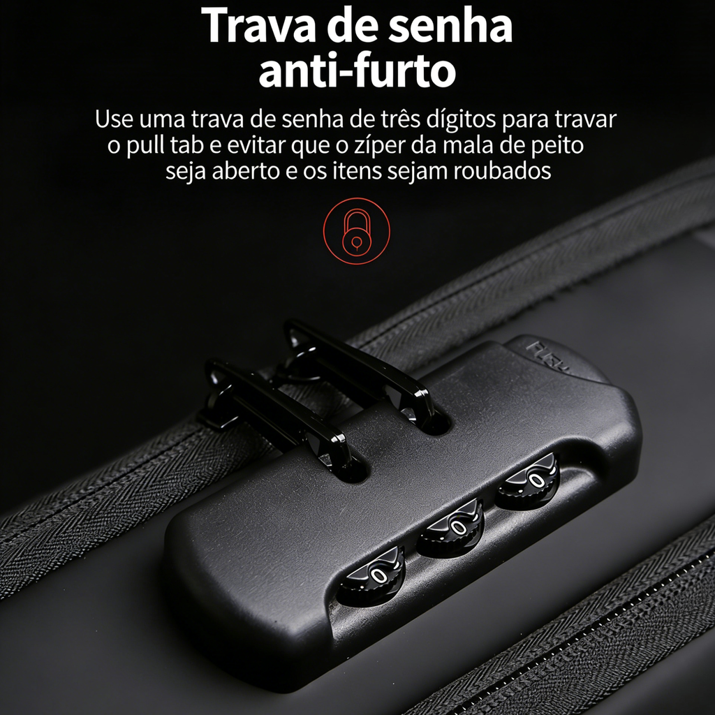 🎒 Bolsa Peitoral Masculina com Cadeado de Senha Antifurto | Impermeável | Multifuncional para Ciclismo e Viagens