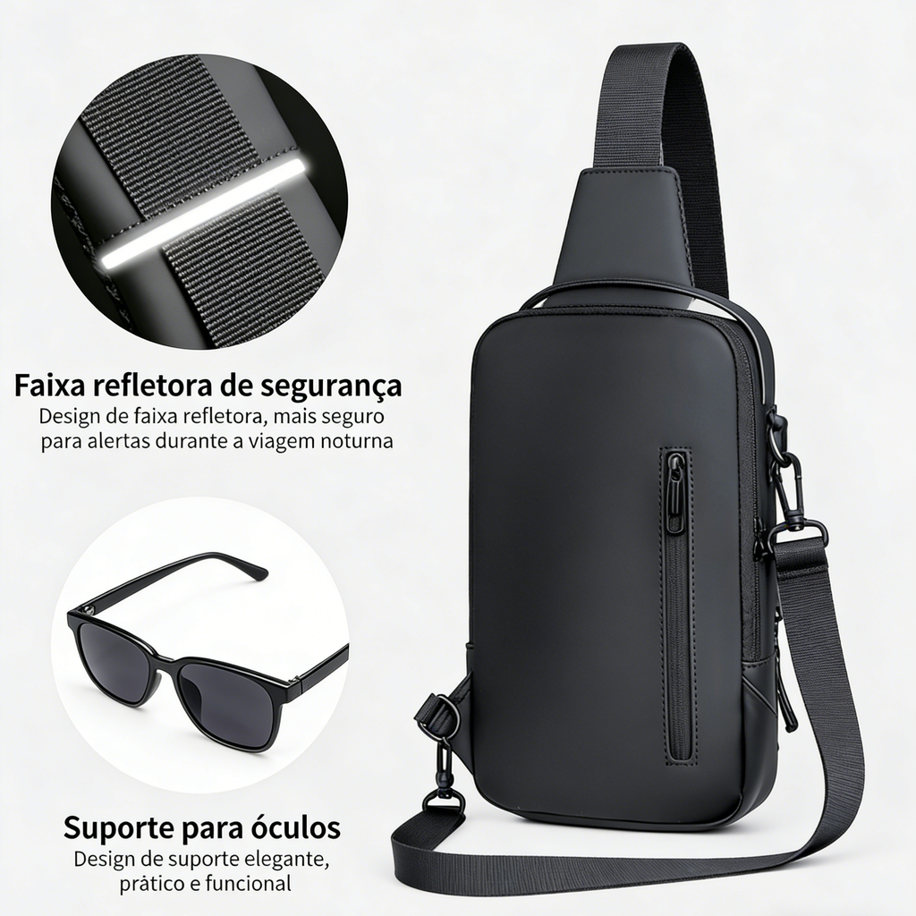 Chegou a bolsa peitoral masculina antifurto premium, a solução perfeita para manter seus pertences seguros e organizados em qualquer situação. Design moderno, material de alta qualidade e funcionalidades exclusivas, ideal para trabalho, ciclismo, viagens e atividades ao ar livre!