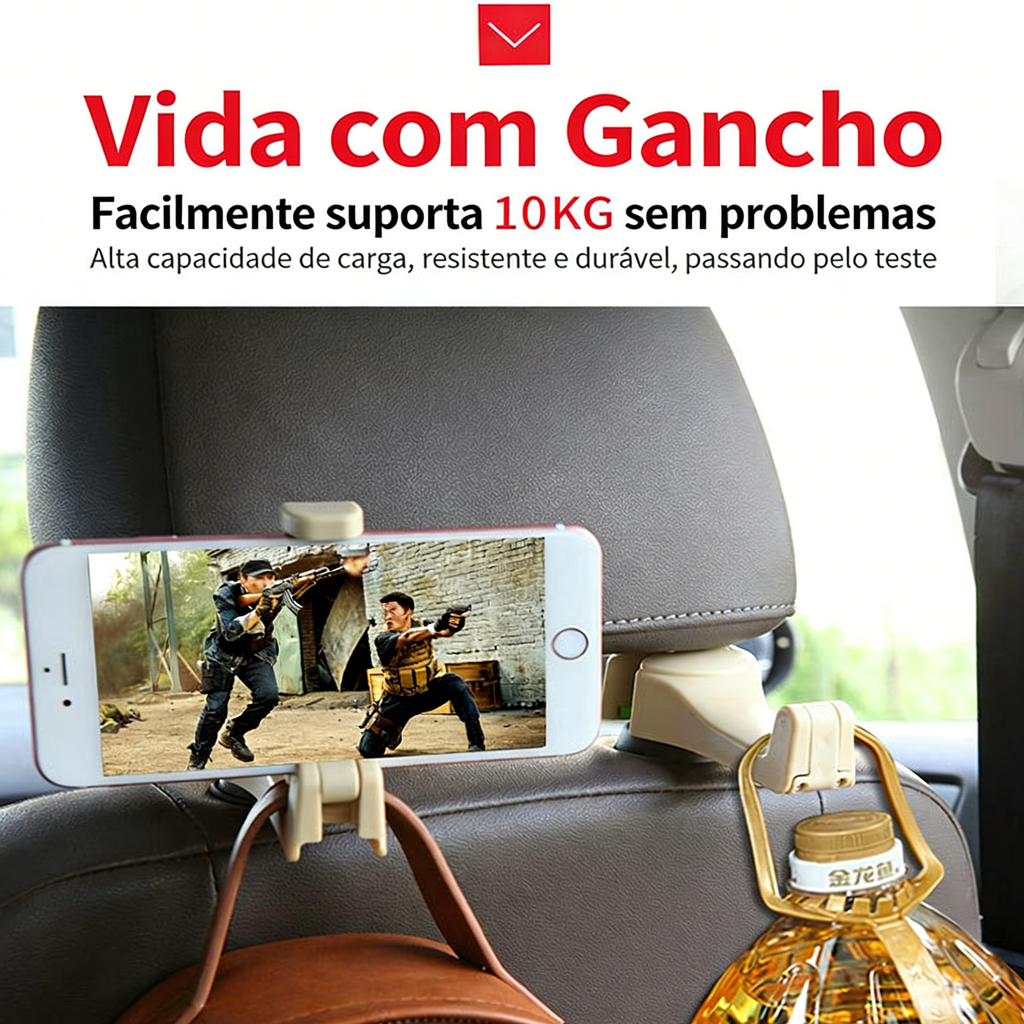 🚗 Gancho para Encosto de Assento + Suporte de Celular | Multifuncional e Resistente