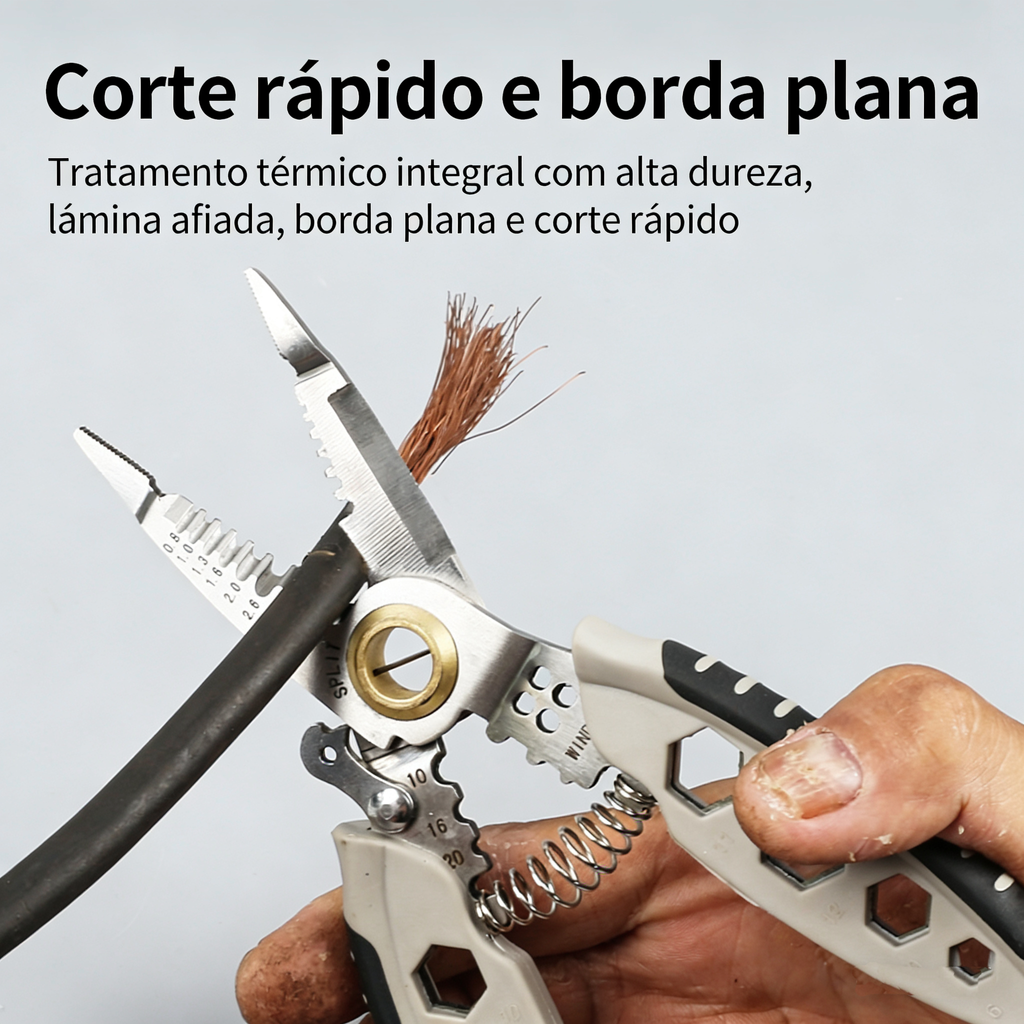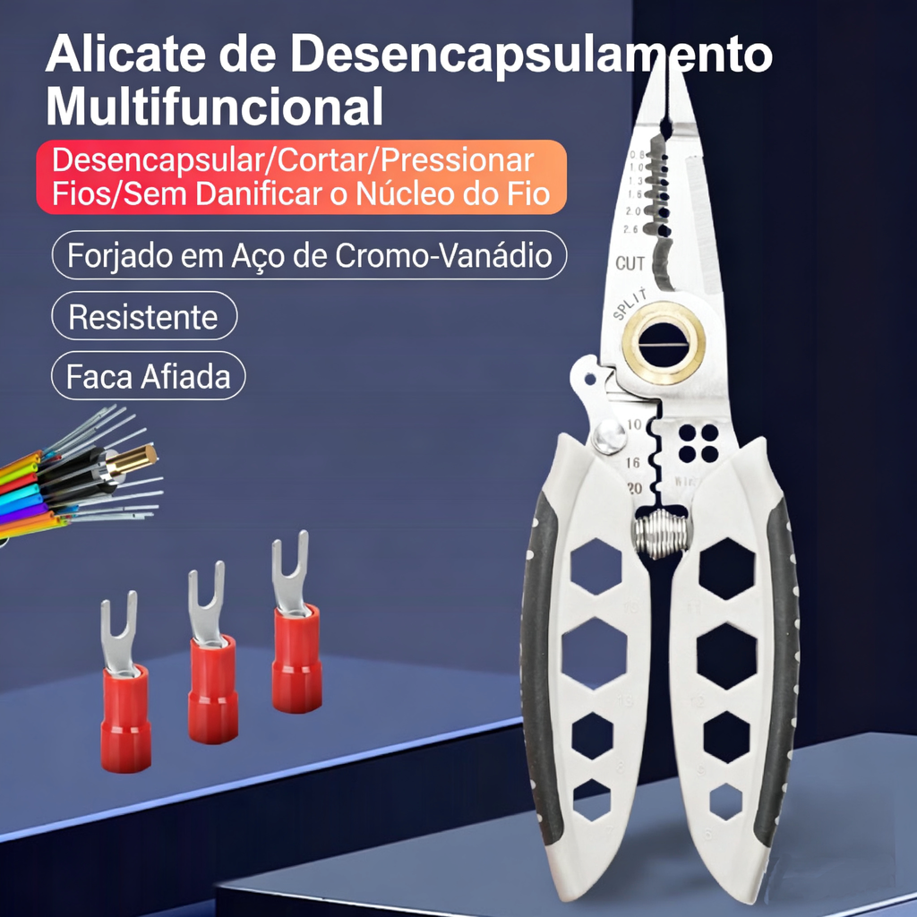 😀Alicate Desencapador Multifuncional de 7 Polegadas, Ferramenta Profissional para Eletricistas, Corta, Desencapa, Crimpa, Enrola Fios e Aperta Parafusos